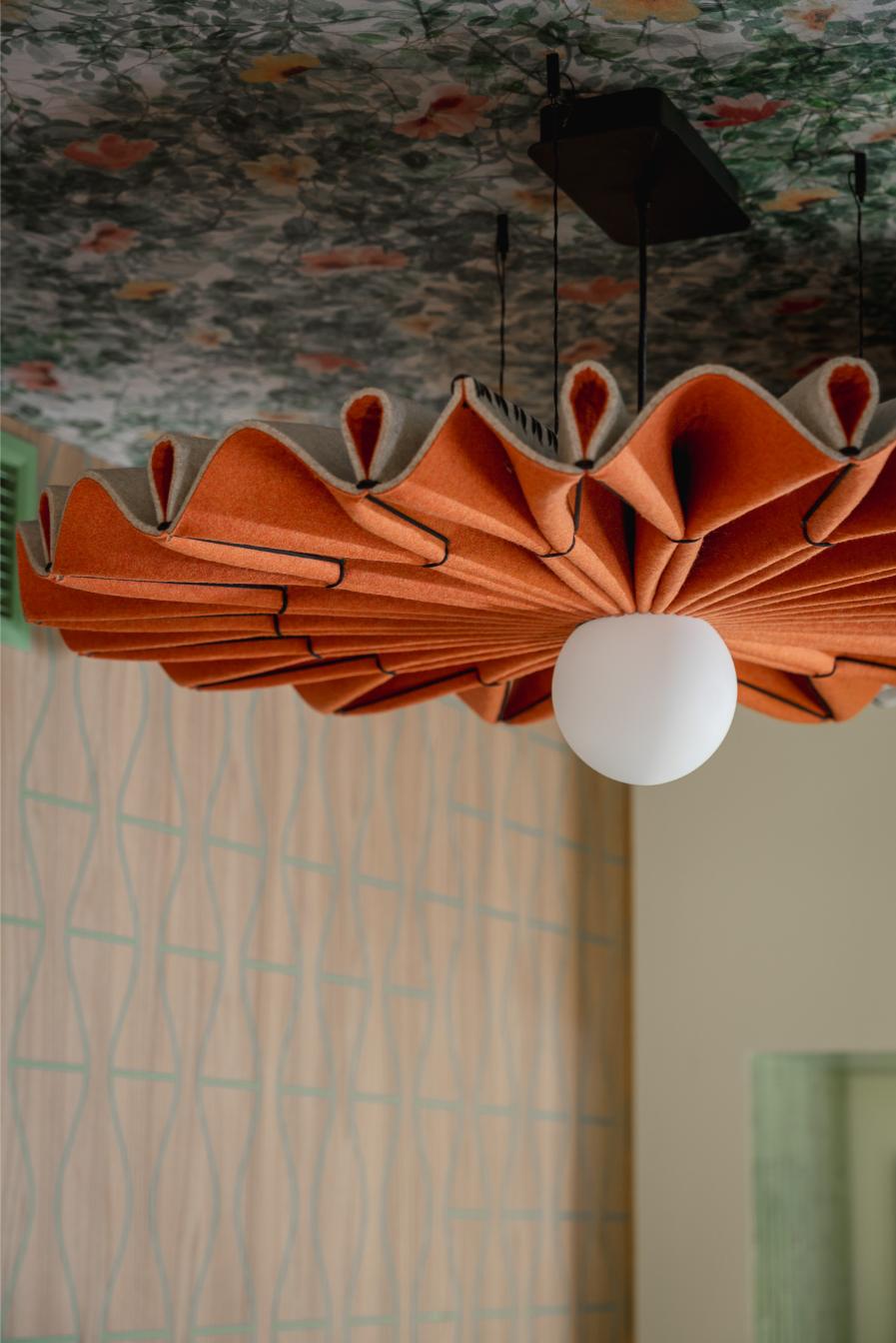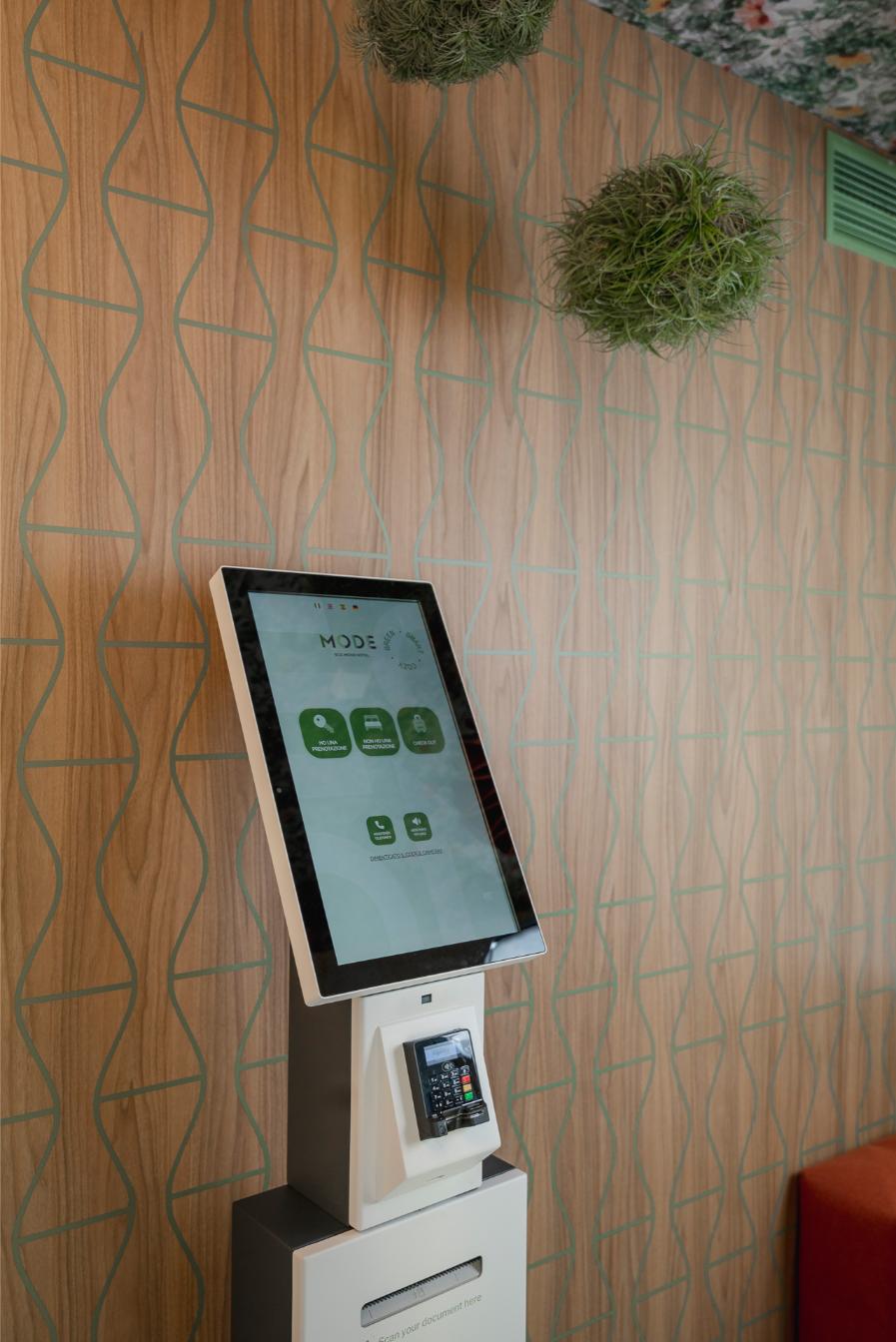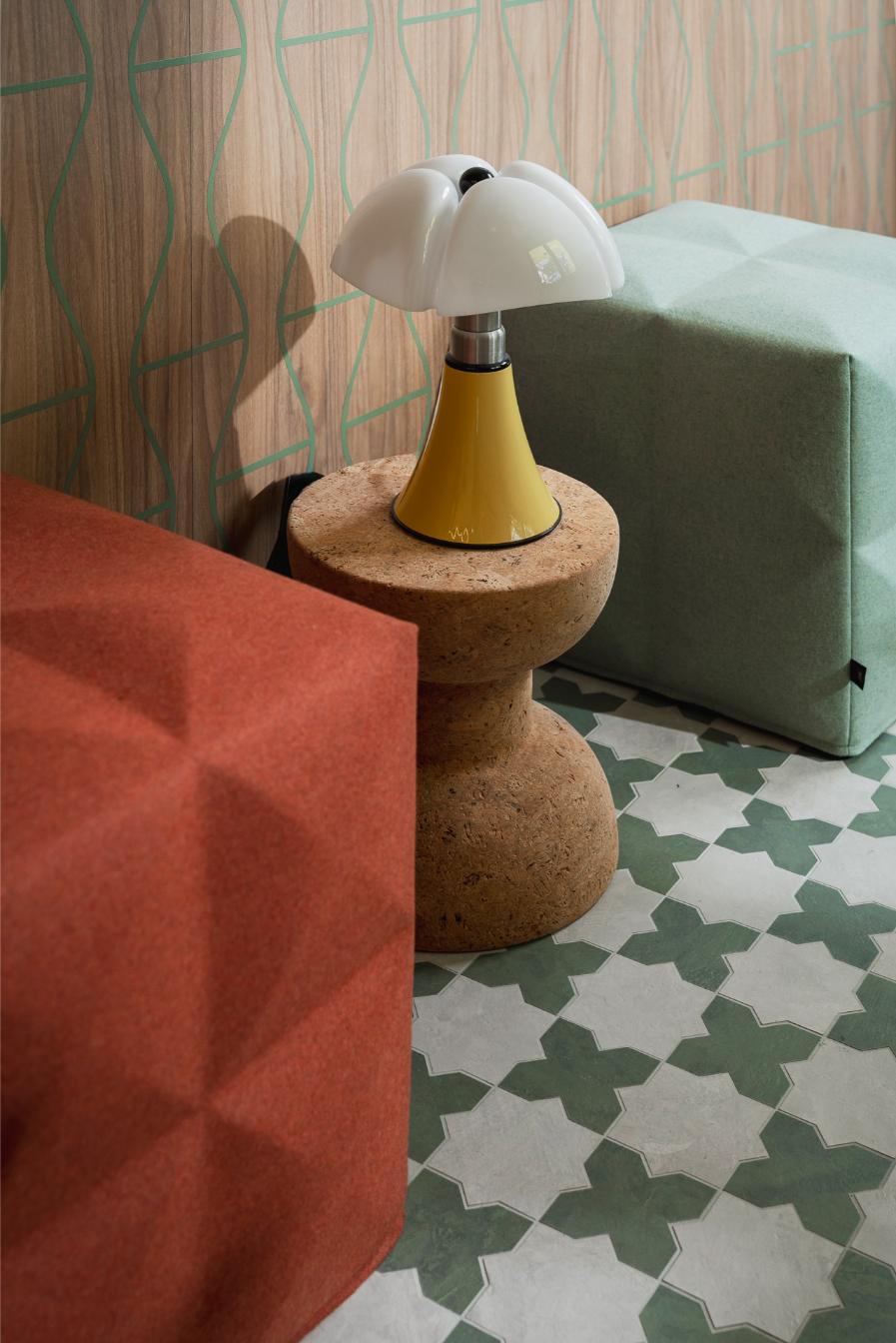 L’ingresso al piano terra, le scale e i servizi al piano terra sono studiati da Laura Verdi. Il titolo del progetto “Stai cosy in una second life”. “È un gioco di parole tra italiano e inglese che significa: trovati a proprio agio in una seconda vita, recupera e riutilizza il più possibile, non sprecare le risorse attuali”. Un progetto di sostenibilità che si traduce non solo nel riciclo e riutilizzo di materiali (come per esempio la plastica proveniente dalla pulizia degli Oceani utilizzata per la realizzazione delle moquette o i corpi lampade fonoassorbenti fatte in feltro realizzato con bottiglie di plastica PET) ma anche una sostenibilità estesa al benessere della persona, amplificando il concetto di rapporto tra uomo-natura con l’utilizzo di disegni biogeometrici e floreali e inserendo elementi di verde come le piante di tillandsia, che si nutrono dell’umidità presente nell’aria e la purificano eliminando gli agenti inquinanti.